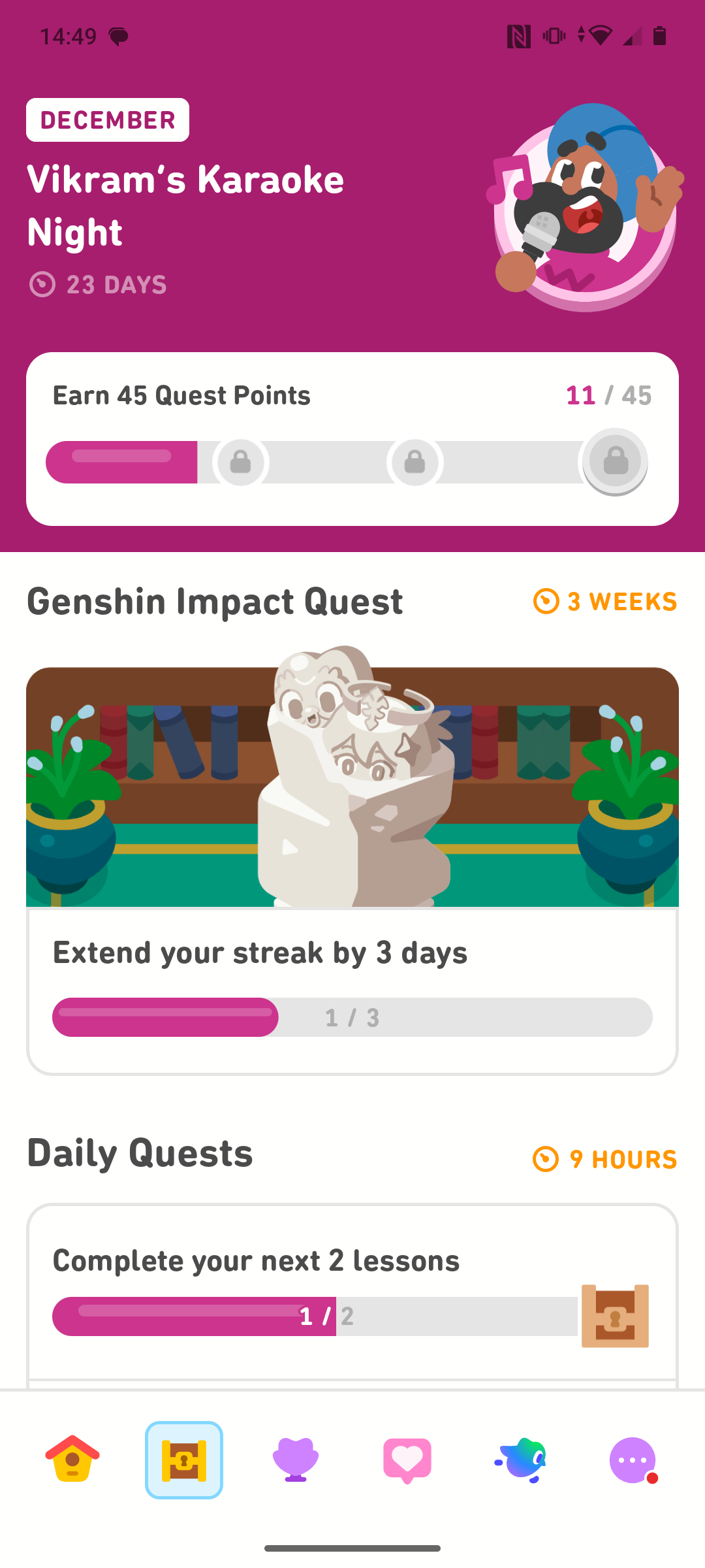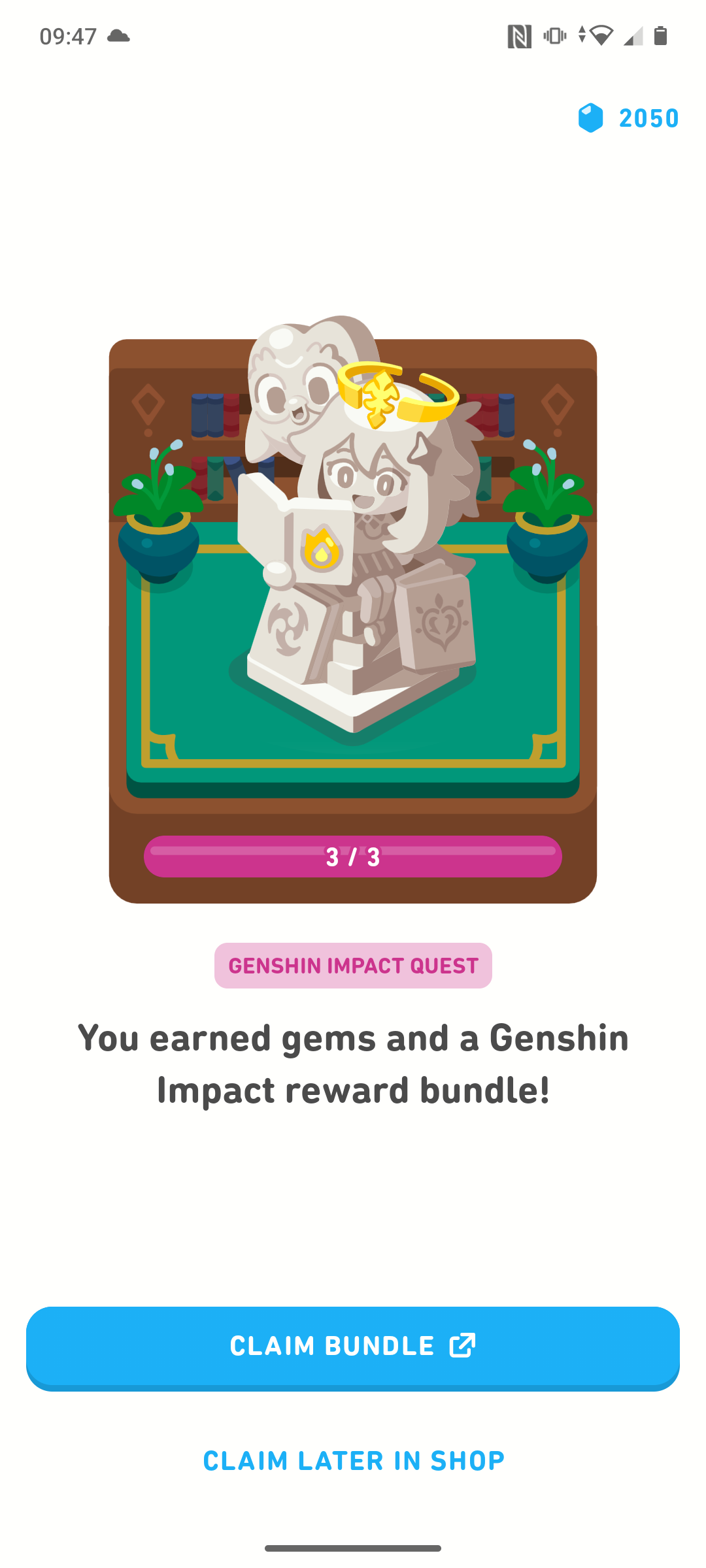 As we’ve mentioned already, completing the quest by the end date grants you a cute Paimon & Duo statue reward to do… whatever it is you do with statues in Duolingo. I’ll be honest, I’m on a 788 day streak right now and even I’m not too sure what they’re actually for.