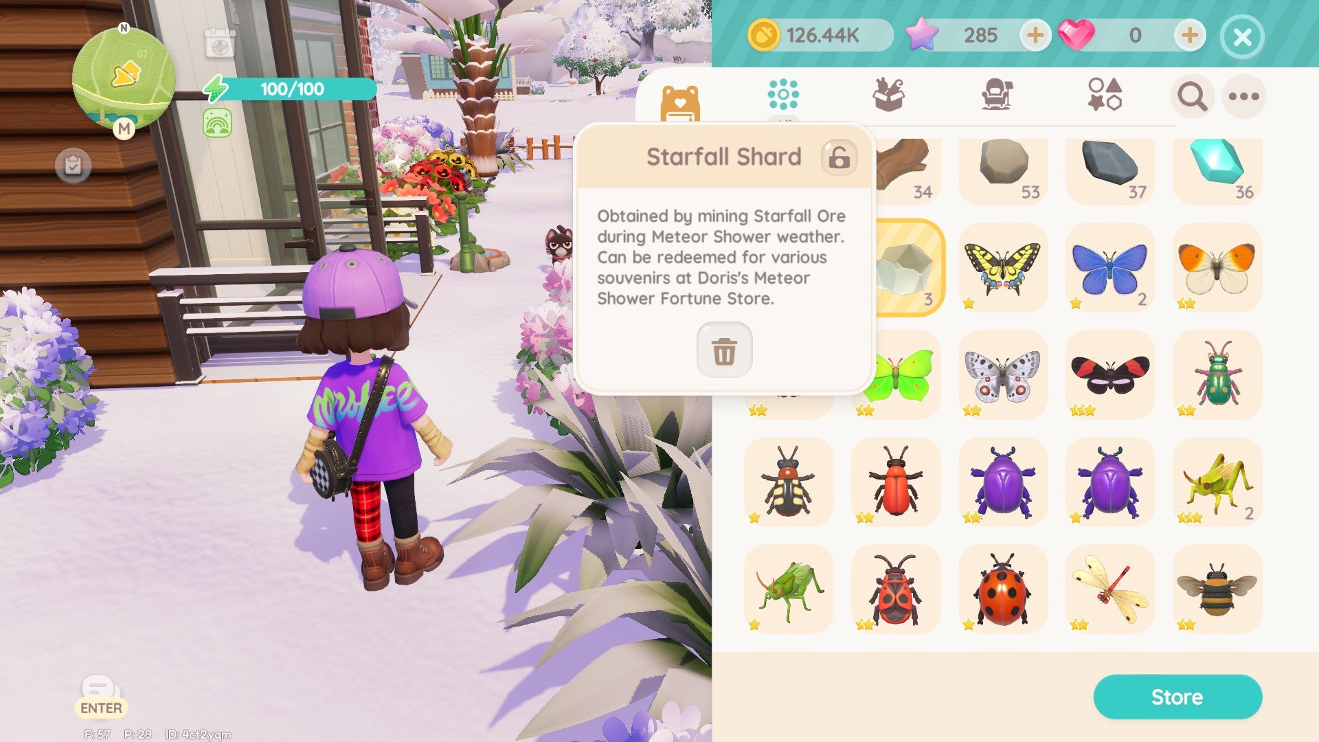 Doris will also trade you different-coloured Starfall Shards on a one-to-one basis in case you’re coming up short for the colour scheme you want, so don’t worry and be sure to collect everything! Starfall Shards don’t respawn until the next meteor shower event, so it makes sense to collect all you can find when given the opportunity.