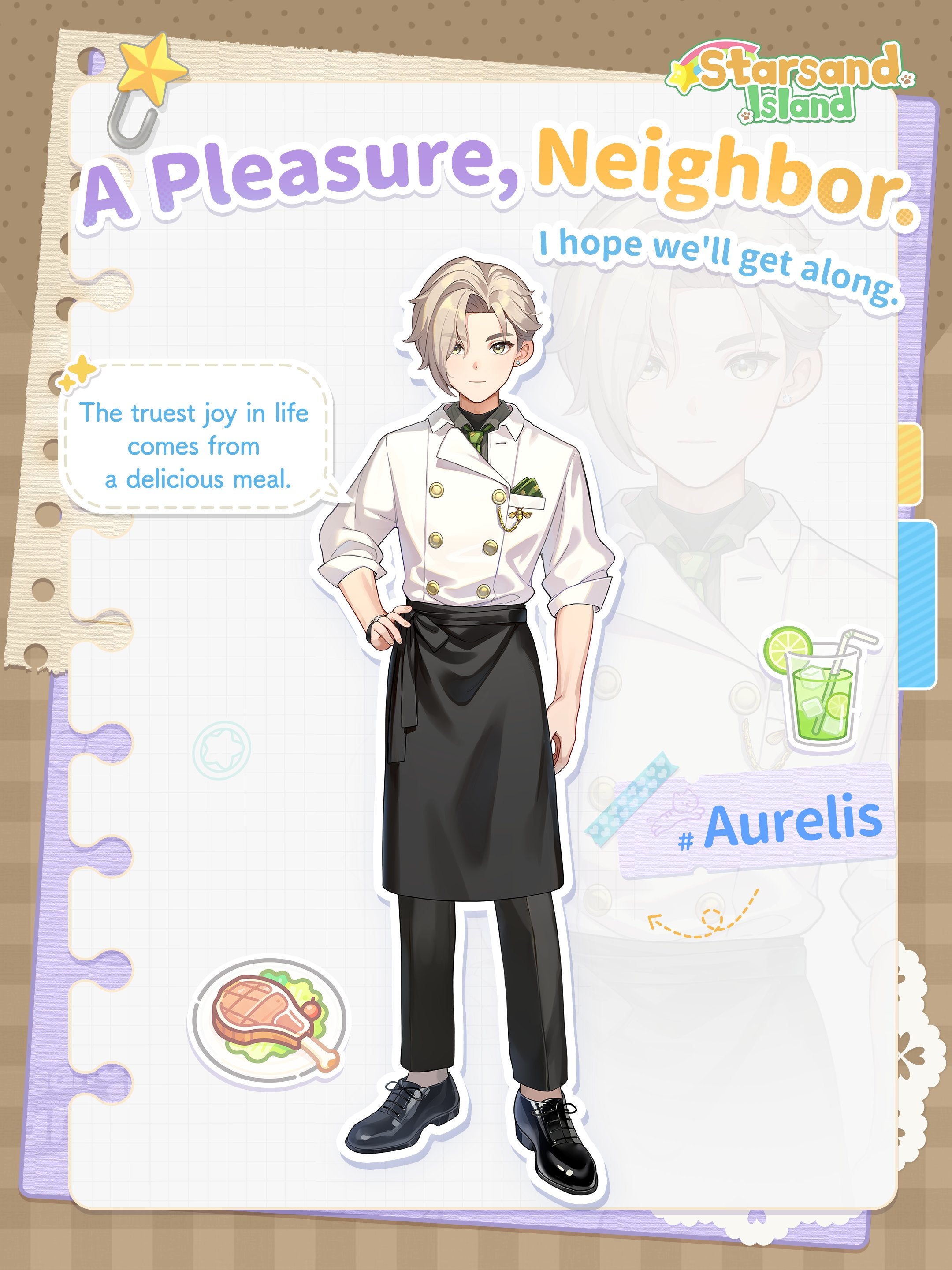 <img loading=“lazy” src=“https://assetsio.gnwcdn.com/starsand-island-aurelis-card.jpg?width=2048&height=2048&fit=bounds&quality=85&format=jpg&auto=webp" onerror=“this.onerror=null;this.src=‘https://blogger.googleusercontent.com/img/a/AVvXsEhe7F7TRXHtjiKvHb5vS7DmnxvpHiDyoYyYvm1nHB3Qp2_w3BnM6A2eq4v7FYxCC9bfZt3a9vIMtAYEKUiaDQbHMg-ViyGmRIj39MLp0bGFfgfYw1Dc9q_H-T0wiTm3l0Uq42dETrN9eC8aGJ9_IORZsxST1AcLR7np1koOfcc7tnHa4S8Mwz_xD9d0=s16000';" alt=“Starsand Island’s Aurelis in his October 2025 artwork reveal. Aurelis is a blonde-haired man dressed in chef’s whites. His quotes are “A Pleasure, Neighbor. I hope we’ll get along” and “The truest joy in life comes from a delicious meal.” - 3”>