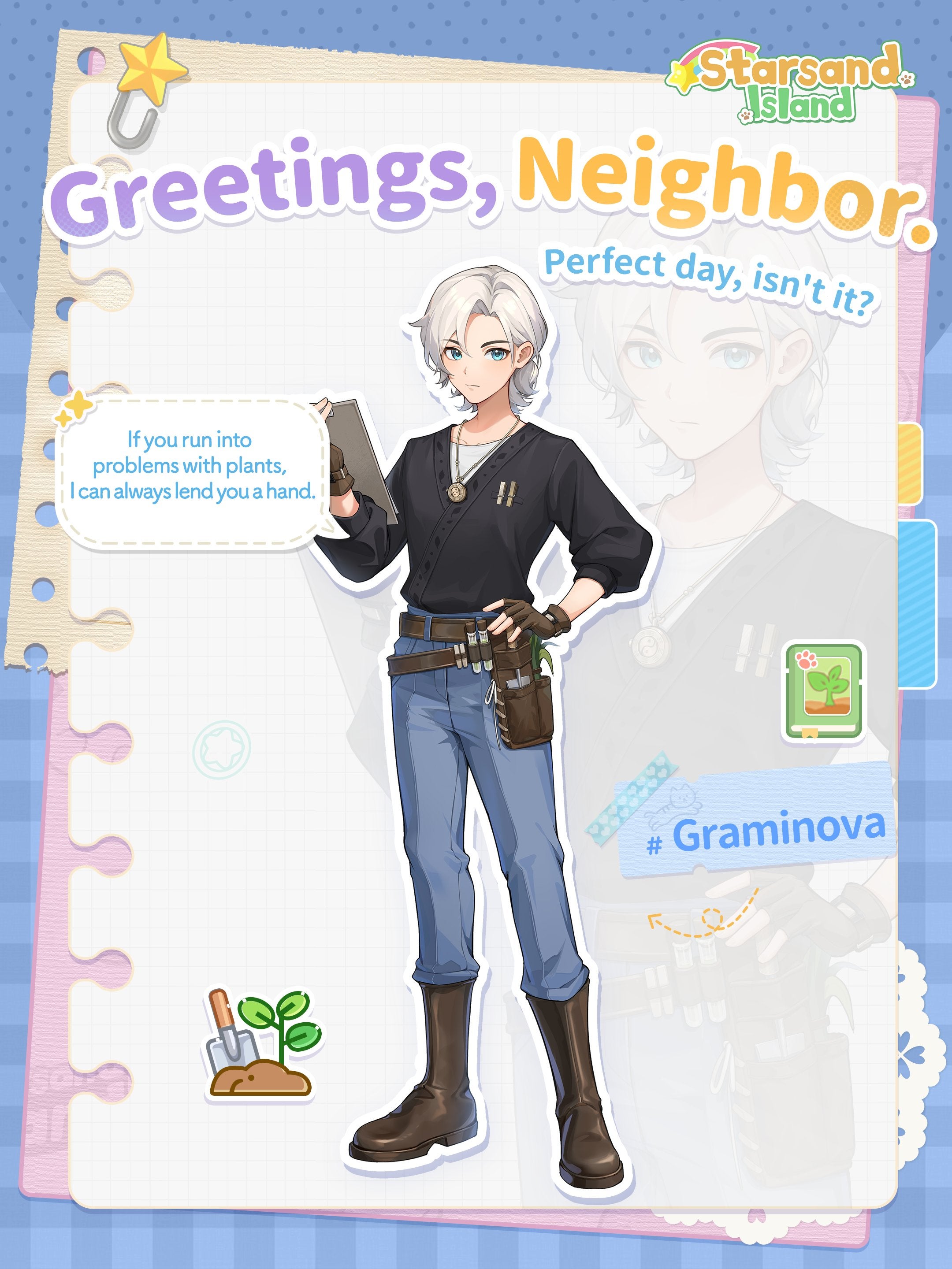 <img loading=“lazy” src=“https://assetsio.gnwcdn.com/starsand-island-graminova-card.jpg?width=2048&height=2048&fit=bounds&quality=85&format=jpg&auto=webp" onerror=“this.onerror=null;this.src=‘https://blogger.googleusercontent.com/img/a/AVvXsEhe7F7TRXHtjiKvHb5vS7DmnxvpHiDyoYyYvm1nHB3Qp2_w3BnM6A2eq4v7FYxCC9bfZt3a9vIMtAYEKUiaDQbHMg-ViyGmRIj39MLp0bGFfgfYw1Dc9q_H-T0wiTm3l0Uq42dETrN9eC8aGJ9_IORZsxST1AcLR7np1koOfcc7tnHa4S8Mwz_xD9d0=s16000';" alt=“Starsand Island’s Graminova in his October 2025 artwork reveal. Graminova is a fair-haired man with pale rosy skin, wearing blue jeans and practical boots along with a black shirt over a white t-shirt, and a belt with gardening tools holstered in it. His quotes are “Greetings, Neighbor. Perfect day, isn’t it?” and “If you run into problems with plants, I can always lend you a hand.” - 5”>