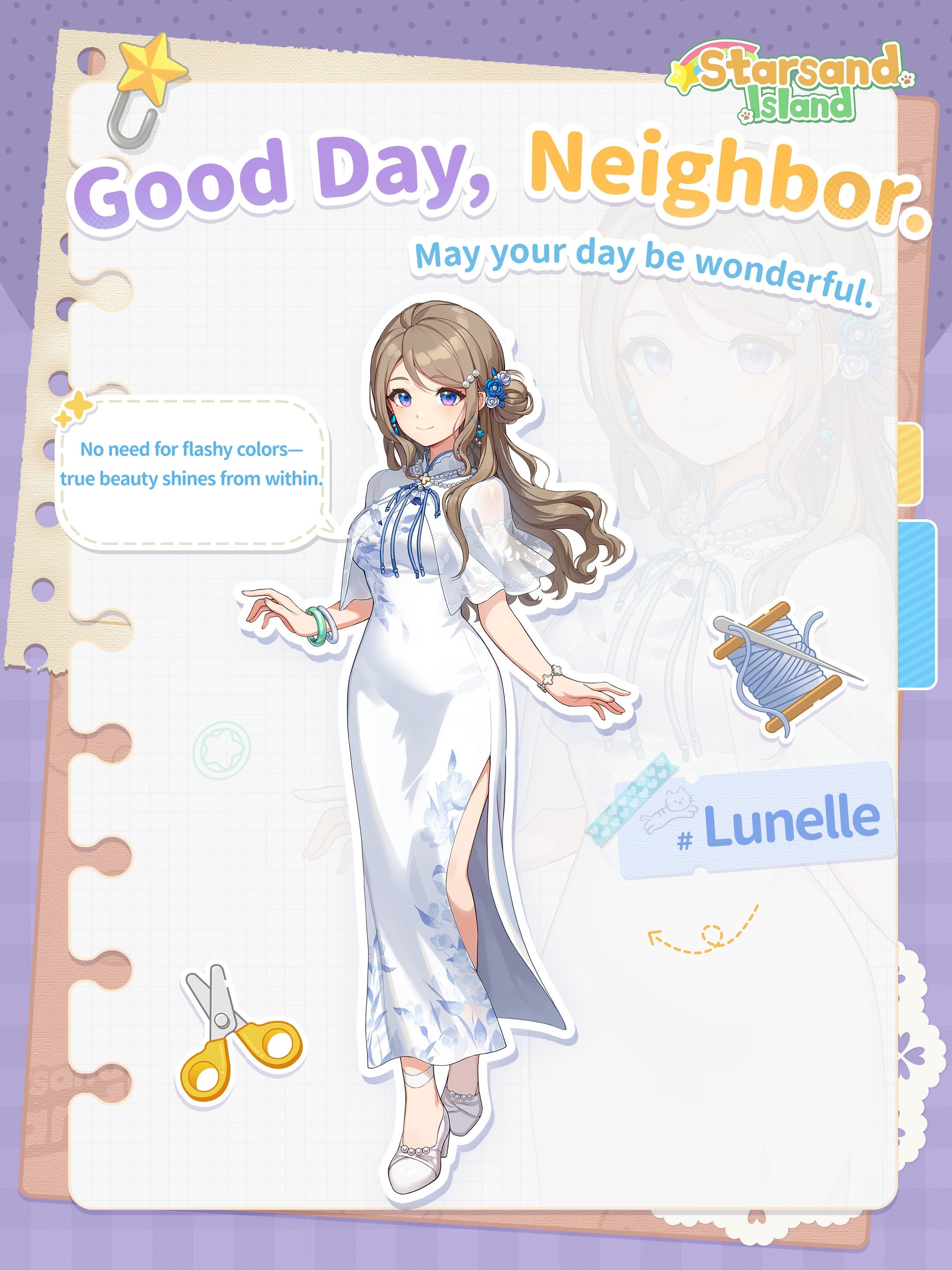 <img loading=“lazy” src=“https://assetsio.gnwcdn.com/starsand-island-lunelle-card.jpg?width=2048&height=2048&fit=bounds&quality=85&format=jpg&auto=webp" onerror=“this.onerror=null;this.src=‘https://blogger.googleusercontent.com/img/a/AVvXsEhe7F7TRXHtjiKvHb5vS7DmnxvpHiDyoYyYvm1nHB3Qp2_w3BnM6A2eq4v7FYxCC9bfZt3a9vIMtAYEKUiaDQbHMg-ViyGmRIj39MLp0bGFfgfYw1Dc9q_H-T0wiTm3l0Uq42dETrN9eC8aGJ9_IORZsxST1AcLR7np1koOfcc7tnHa4S8Mwz_xD9d0=s16000';" alt=“Starsand Island’s Lunelle in her October 2025 artwork reveal. Lunelle is a woman with flowing long light brown hair and fair skin, dressed in a white Chinese-style dress with light blue accents. Her quotes are “Good Day, Neighbor. May your day be wonderful” and “No need for flashy colors — true beauty shines from within.” - 6”>