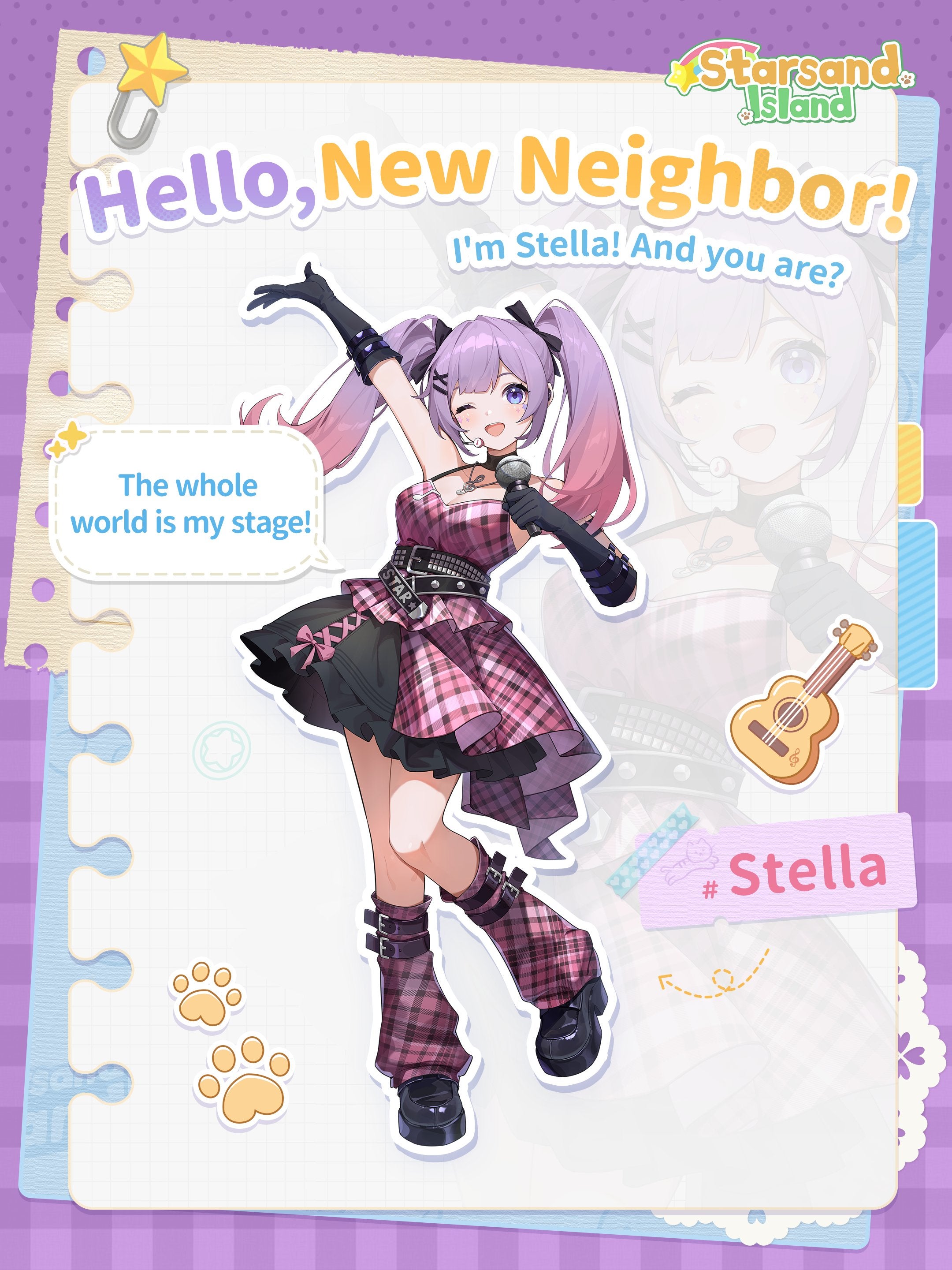 <img loading=“lazy” src=“https://assetsio.gnwcdn.com/starsand-island-stella-card.jpg?width=2048&height=2048&fit=bounds&quality=85&format=jpg&auto=webp" onerror=“this.onerror=null;this.src=‘https://blogger.googleusercontent.com/img/a/AVvXsEhe7F7TRXHtjiKvHb5vS7DmnxvpHiDyoYyYvm1nHB3Qp2_w3BnM6A2eq4v7FYxCC9bfZt3a9vIMtAYEKUiaDQbHMg-ViyGmRIj39MLp0bGFfgfYw1Dc9q_H-T0wiTm3l0Uq42dETrN9eC8aGJ9_IORZsxST1AcLR7np1koOfcc7tnHa4S8Mwz_xD9d0=s16000';" alt=“Starsand Island’s Stella in her October 2025 artwork reveal. Stella is a young woman with long pink-and-purple hair in pigtails. She wears a pink tartan dress with black underskirt, matching leg warmers, and black buckled boots and gloves. Her quotes are “Hello, New Neighbor! I’m Stella! And you are?” and “The whole world is my stage!” - 11”>