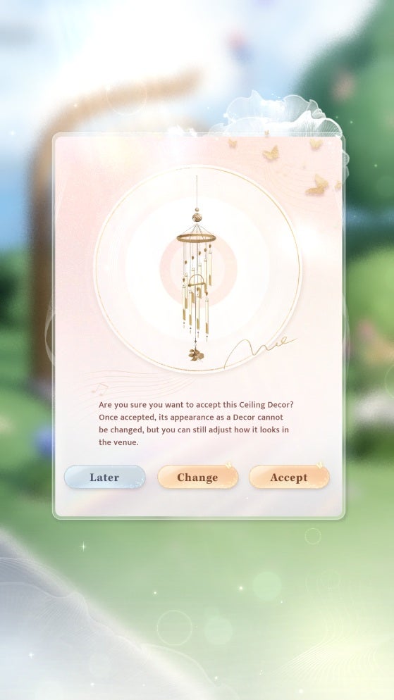 <img loading=“lazy” src=“https://assetsio.gnwcdn.com/love-and-deepspace-accept-echo-chime.jpg?width=2048&height=2048&fit=bounds&quality=85&format=jpg&auto=webp" onerror=“this.onerror=null;this.src=‘https://blogger.googleusercontent.com/img/a/AVvXsEhe7F7TRXHtjiKvHb5vS7DmnxvpHiDyoYyYvm1nHB3Qp2_w3BnM6A2eq4v7FYxCC9bfZt3a9vIMtAYEKUiaDQbHMg-ViyGmRIj39MLp0bGFfgfYw1Dc9q_H-T0wiTm3l0Uq42dETrN9eC8aGJ9_IORZsxST1AcLR7np1koOfcc7tnHa4S8Mwz_xD9d0=s16000';" alt=“A pop-up in Love and Deepspace featuring an image of a wind chime prompts the player with “Are you sure you want to accept this ceiling decor? Once accepted, its appearance as decor cannot be changed, but you can still adjust how it looks in the venue”. Options are Later, Change, or Accept. - 3”>